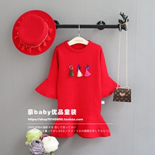 韩版中大童女童针织连衣裙2016新款秋装儿童毛线喇叭袖鱼尾长裙