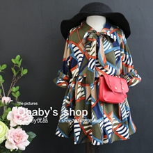 2017新款春款女童连衣裙儿童雪纺碎花图案领口系带长袖裙子