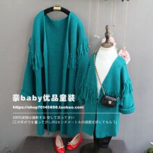 韩版童装女童秋冬针织开衫宝宝中长款毛线外套母女装亲子装毛线衣