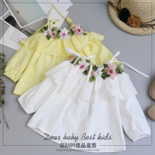 韩国童装2017年女童上衣韩版吊带大花刺绣一字肩娃娃衫宝宝公主裙