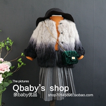 韩版女童皮草大衣秋冬咘噜咘噜渐变真兔毛短款外套宝宝加棉毛毛衣