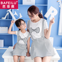 芭菲鹿童装母女亲子装韩版牛仔背带裙2017夏装新款猫咪背带母女装