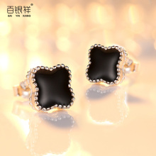 小清新四叶草日韩国925银耳钉女黑色简约甜美百搭防过敏饰品生日