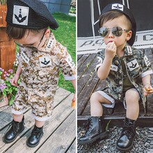 太阳的后裔同款宝宝迷彩服婴幼儿童夏季套装小男童三件套2016新款