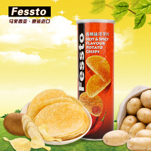 马来西亚进口零食菲思图香辣味洋芋薯片160g罐装 办公休闲膨化