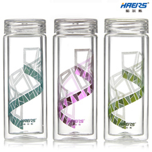 哈尔斯玻璃杯带盖彩色双层男士杯子便携透明女士水杯圆形茶杯