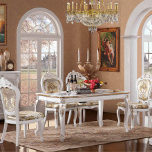 欧式实木餐桌椅组合 豪华白色描金餐台实木长吃饭桌子1.4米/1.6米