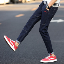 秋季新款弹力松紧牛仔裤男士青少年小脚裤秋季长裤子韩版修身裤男