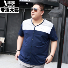 毕蒙大码男装V领特大号T恤拼接加肥加大夏装上衣胖子肥佬短袖T恤
