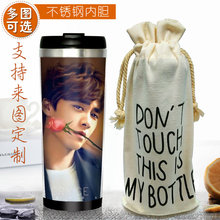 包邮定制李易峰水杯便携双层杯子 不锈钢内胆周边同款定做包邮