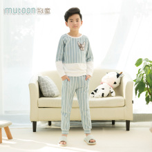 牧童春款儿童睡衣2017新款童装男童家居服男童长袖条纹居家2件套