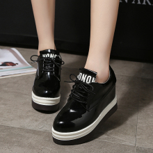 韩版内增高单鞋2016秋冬新款系带运动休闲女鞋潮时尚漆皮厚底单鞋