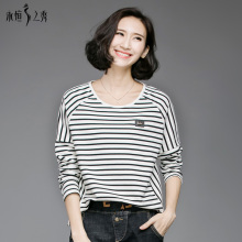 永恒之秀加大码女装2017春季新款胖mm韩版简约显瘦条纹长袖T恤潮