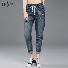 永恒之秀大码女装牛仔裤九分裤2017韩版胖mm夏装松紧带九分裤修身