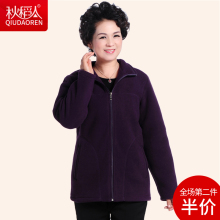 秋稻人中老年秋装抓绒卫衣女妈妈装长袖加大码立领加厚摇粒绒外套