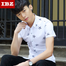 英伦星星印花衬衫男短袖修身男士潮流休闲夏季薄款衬衣男韩版夏装