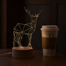 宜家木质简约3D动物造型LED音乐台灯创意生日礼物送男生女生 麋鹿