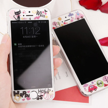iphone6plus钢化膜苹果6彩色六卡通可爱6p钢化彩膜5.5玻璃4.7萌s