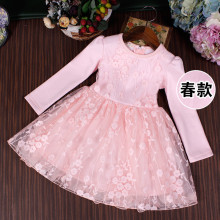 2017春装新款女童连衣裙儿童长袖公主裙童装春秋季纯棉蕾丝蓬蓬裙