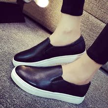 2017春新款真皮乐福鞋女平底韩版厚底内增高休闲女鞋高帮懒人鞋潮