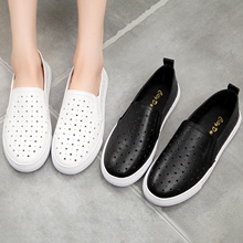 乐福鞋女2017春夏镂空透气真皮平底休闲鞋女韩版潮百搭洞洞懒人鞋