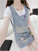 2016夏装新款百搭无袖背心牛仔连衣裙宽松休闲背带裙女