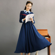 尤麦春装新品欧式复古衬衫领天鹅长款连衣裙女Y30713