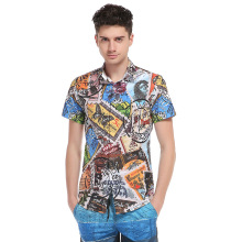 2017外贸时尚男士衬衣 复古3D邮票大码夏季威夷沙滩短袖衬衫
