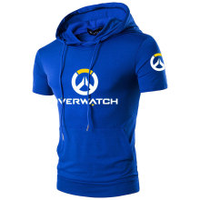 OW 守望先锋Overwatch 夏季男士连帽大口袋大码高街嘻哈短袖T恤
