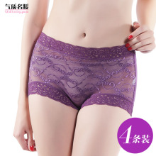 气质名媛女莫代尔内衣舒适性感蕾丝透明中腰平角高弹内裤四条盒装