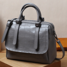 欧洲站鳄鱼纹头层牛皮波士顿枕头包真皮手提包单肩斜挎时尚女包包