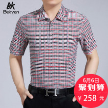 夏装新品丝绸服装真丝T恤男士格子短袖衫桑蚕丝体恤衫男3370