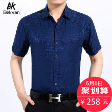 桑蚕丝夏季中年爸爸装中老年衬衫男士真丝短袖衬衣丝绸薄上衣2984