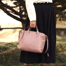 青歌新款简约时尚潮流头层牛皮真皮大容量手提斜挎气质女包饺子包