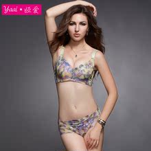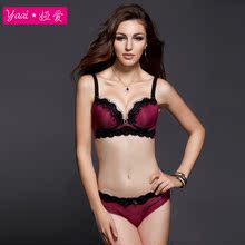 娅爱蕾丝聚拢调整型薄厚杯文胸性感女士内衣套装【文胸+内裤】