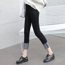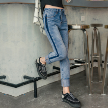 2017春夏新款韩版学生黑色牛仔裤女九分裤卷边小脚裤子紧身显瘦潮