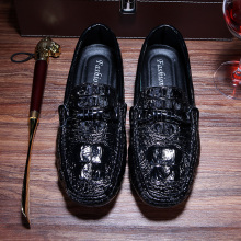 男鞋春季透气真皮豆豆鞋男鳄鱼纹休闲皮鞋懒人英伦套脚鞋青年驾车
