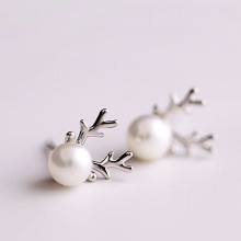彩顿饰品 正品S925纯银鹿角耳钉 清新小动物珍珠耳环百搭小饰品