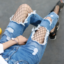 春夏新款做旧毛边破洞牛仔裤女宽松九分裤显瘦韩国bf风个性乞丐裤