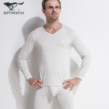 七匹狼内衣男士莫代尔秋衣秋裤套装男薄款V领内衣青年棉毛衫