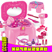 儿童过家家女孩娃娃玩具套装化妆盒凳子梳妆台电动仿真吹风机公主