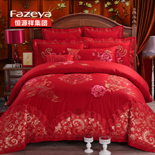 恒源祥 集团刺绣花婚庆套件大红四六九十件套结婚被套百子多件套