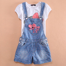 皮皮熊女童背带裤中大童女装夏装13儿童牛仔短裤15小学生12岁女孩