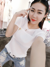 欧货夏季新款女时尚刺绣透视美背短袖T恤衫女百搭修身半袖打底衫