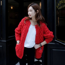 2016韩版新款新款中长款秋冬毛衣针织开衫粗针毛线宽松外套女