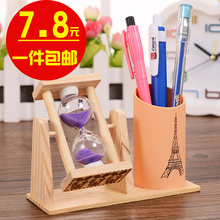 创意韩国文具旋转沙漏实木笔筒小号办公用品收纳盒多功能笔插笔座