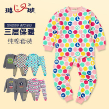 璐璇儿童保暖内衣套装 纯棉三层加厚冬季小中大男女童