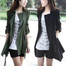 2015秋季女装大衣韩版大码中长款七分袖薄风衣纯色春秋休闲外套潮