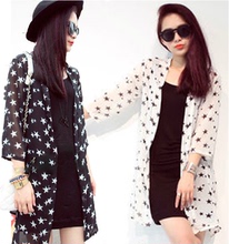 夏季新款防晒衣服女式七分短袖雪纺衫披肩中长款开衫薄外套空调衫