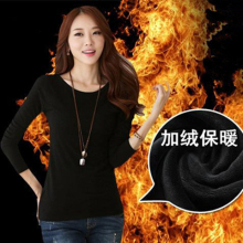 2016冬季加绒加厚打底衫女贴身上衣圆领保暖内衣修身外穿长袖小衫